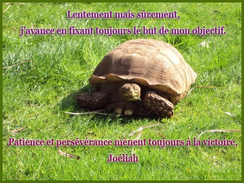 Je fixe mon but, quoiqu’il arrive et j’avance, même si c’est lentement. L’important est de persévérer.