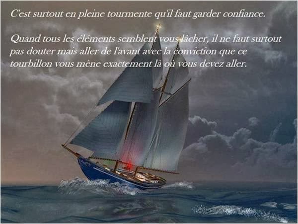 Au contraire, aller libérer les émotions en soi, renforcer sa foi, prendre une direction peut-être légèrement différente et tenir ferme jusqu’au port, c’est s’assurer la joie de la réussite et de la confiance en son esprit créateur.